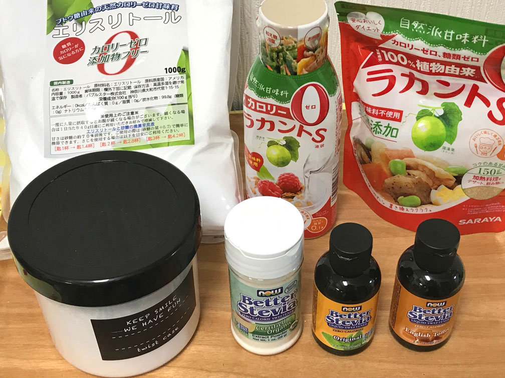 糖質0の天然甘味料 ノウハウ 2017年11月17日 糖質0の甘味料として私が良く使うエリスリトール、ステビア、そしてラカントについての解説記事を書きました。 これらは合成甘味料ではないので、その辺を気にされる方、またはお子様の居る家庭でも安心して使うことができます。 それぞれ特性が異なるので、用途に合わせて使い分けると良いと思います。 つづきはこちら [2回]