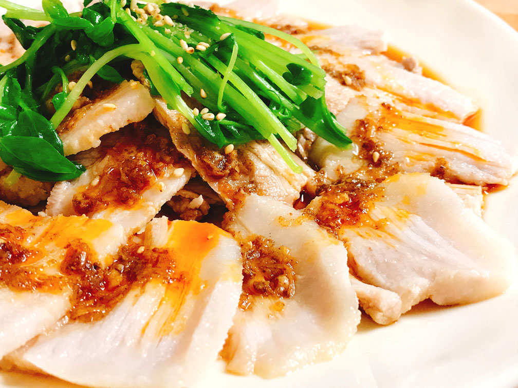 低糖質雲白肉 お料理 2019年05月07日 雲白肉(ウンパイロウ)、茹でた豚肉にニンニクソースをかけた冷菜料理。 茹でて薄切りにした豚肉が、ひらひらと空に浮かぶ雲ように見えることから、この名が付いたと言われています。 即席の甜醤油(テンジャンヨウ)で作るタレと、シンプルな香味ダレの2種類のソースをお楽しみ下さい。 つづきはこちら [1回]