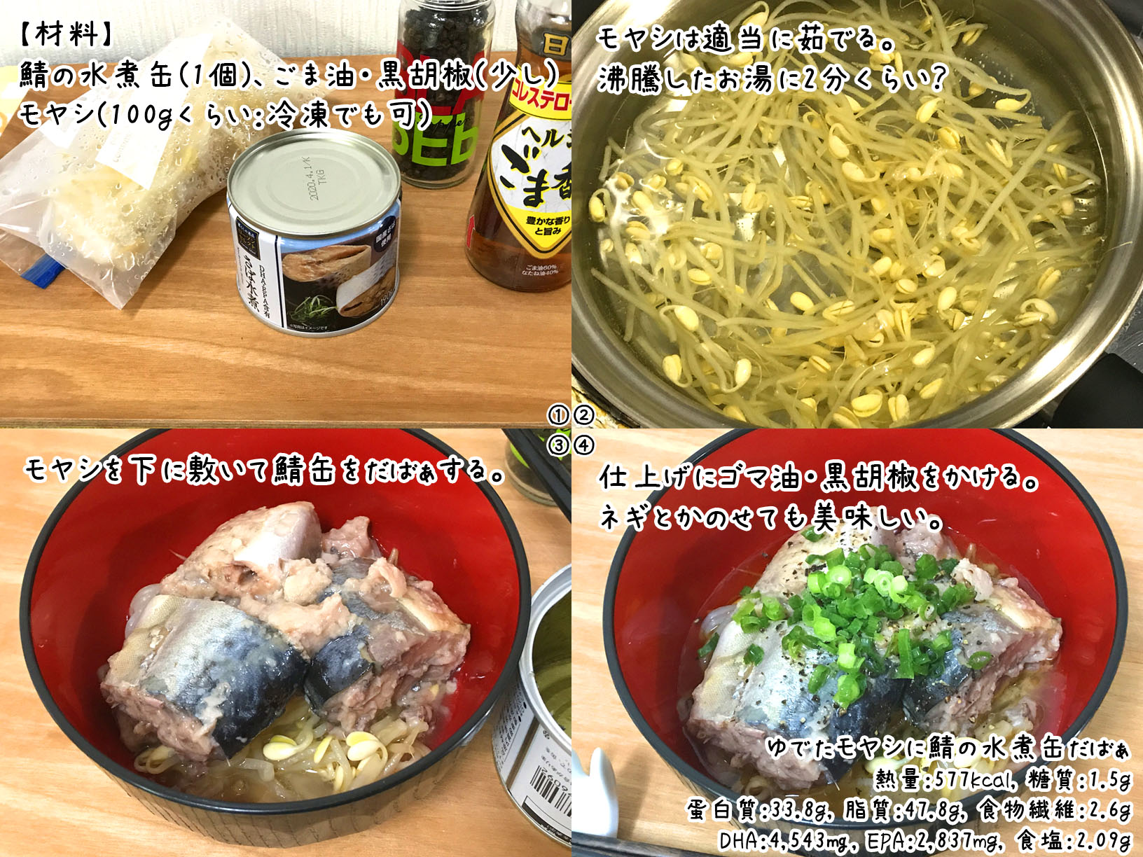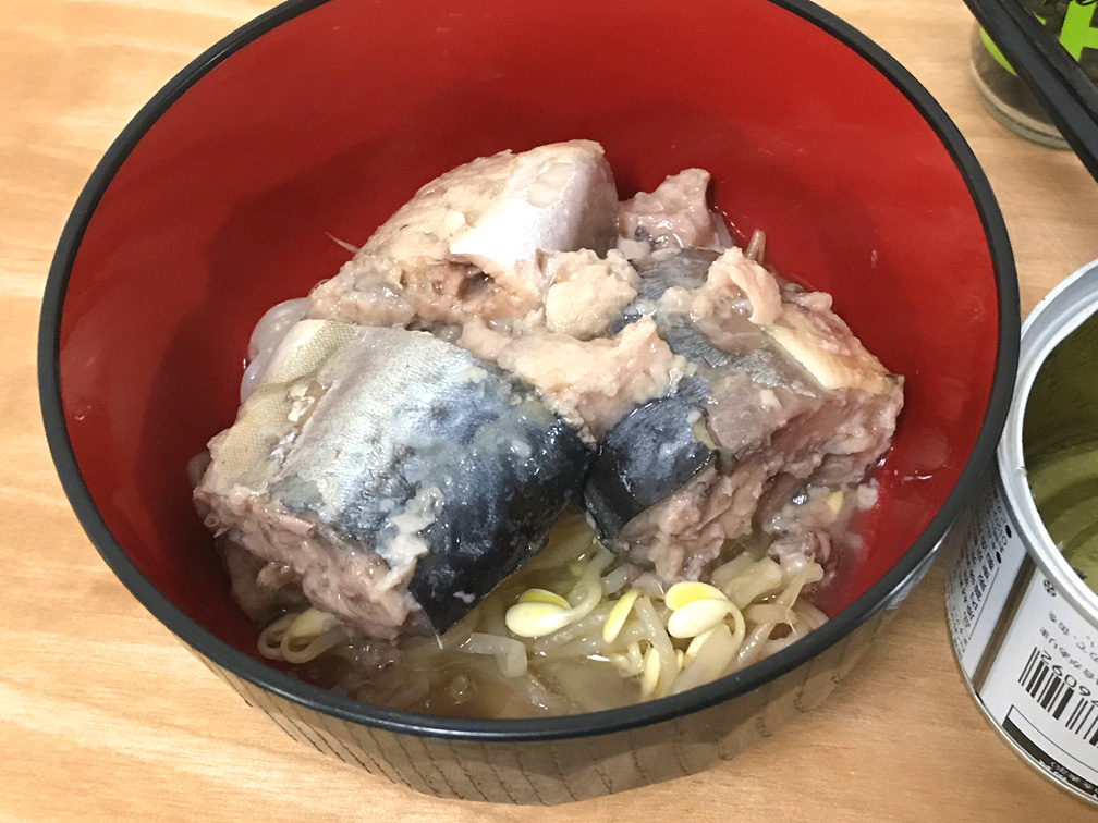 ゆでたモヤシに鯖の水煮缶だばぁ