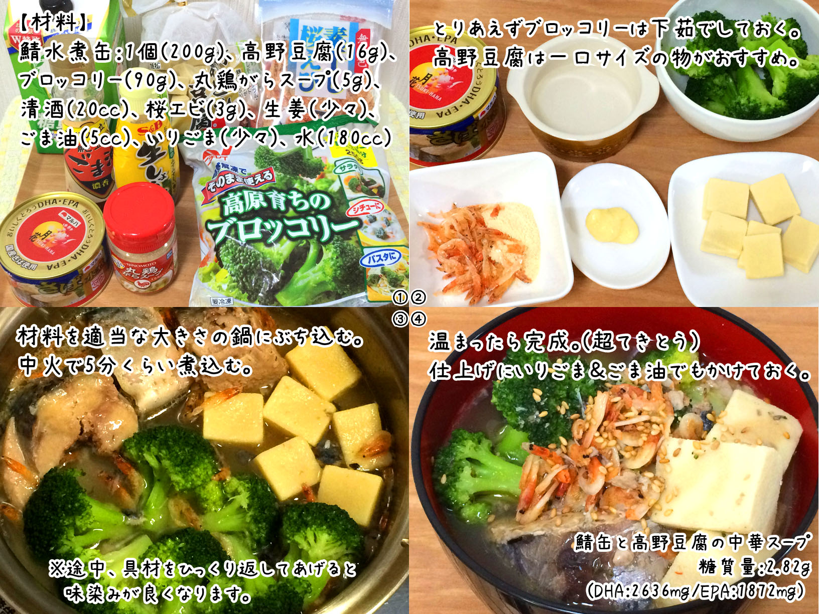 鯖缶と高野豆腐の中華スープ