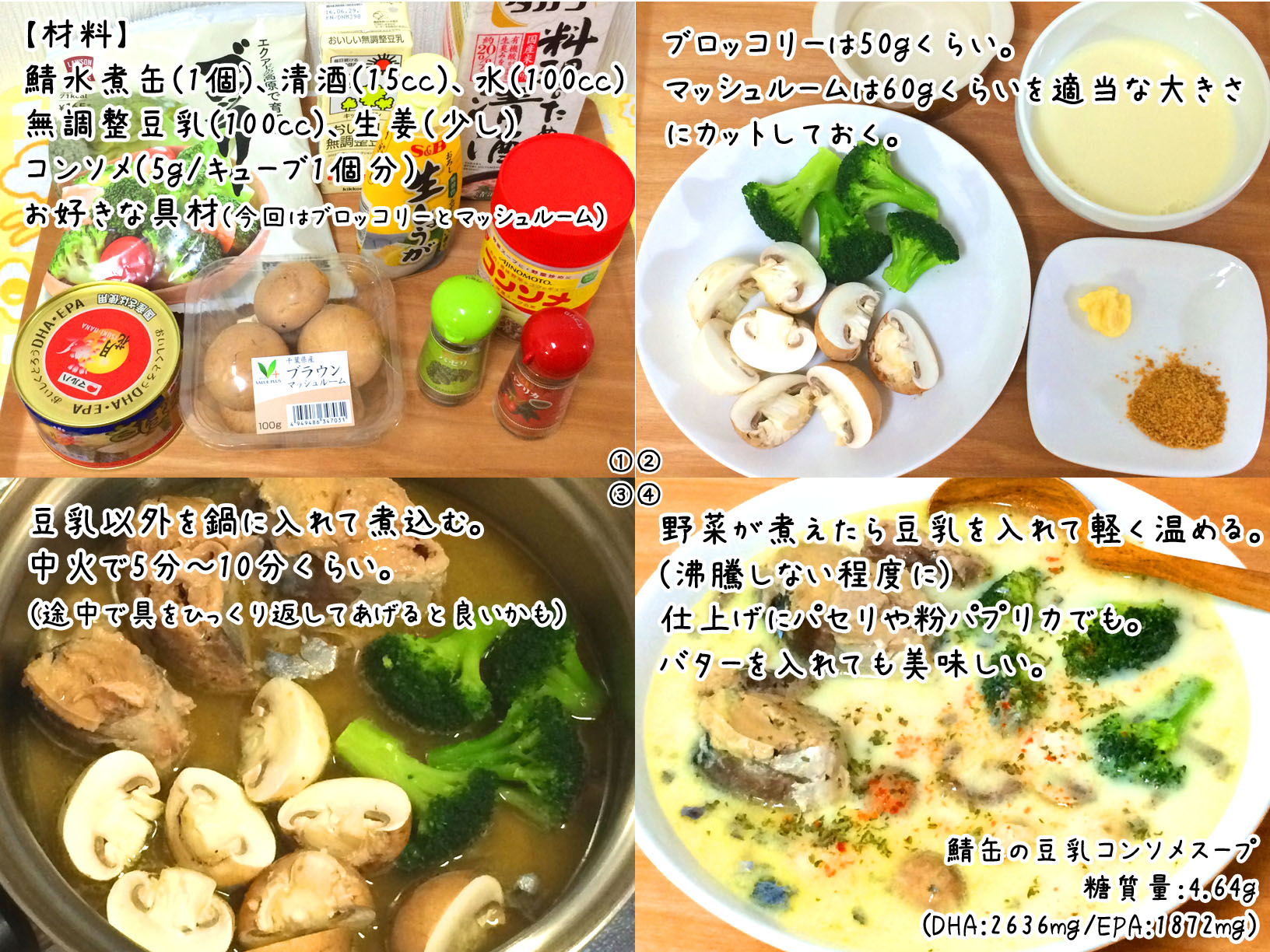 鯖缶と豆乳のコンソメスープ