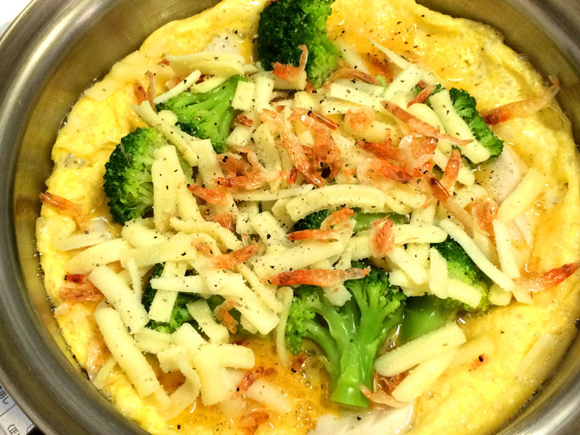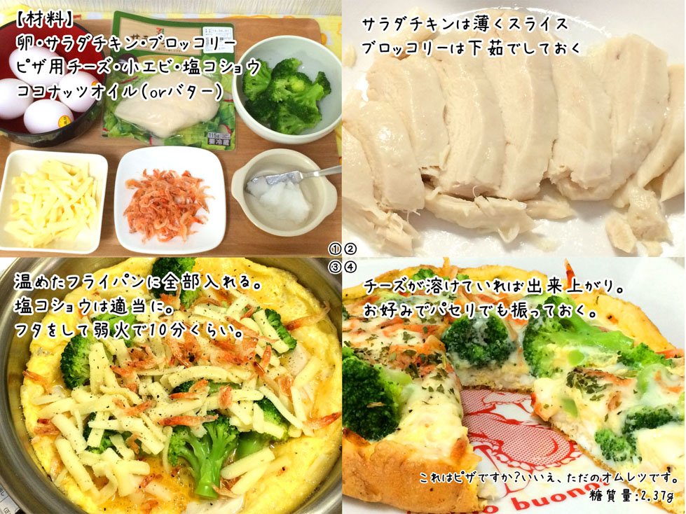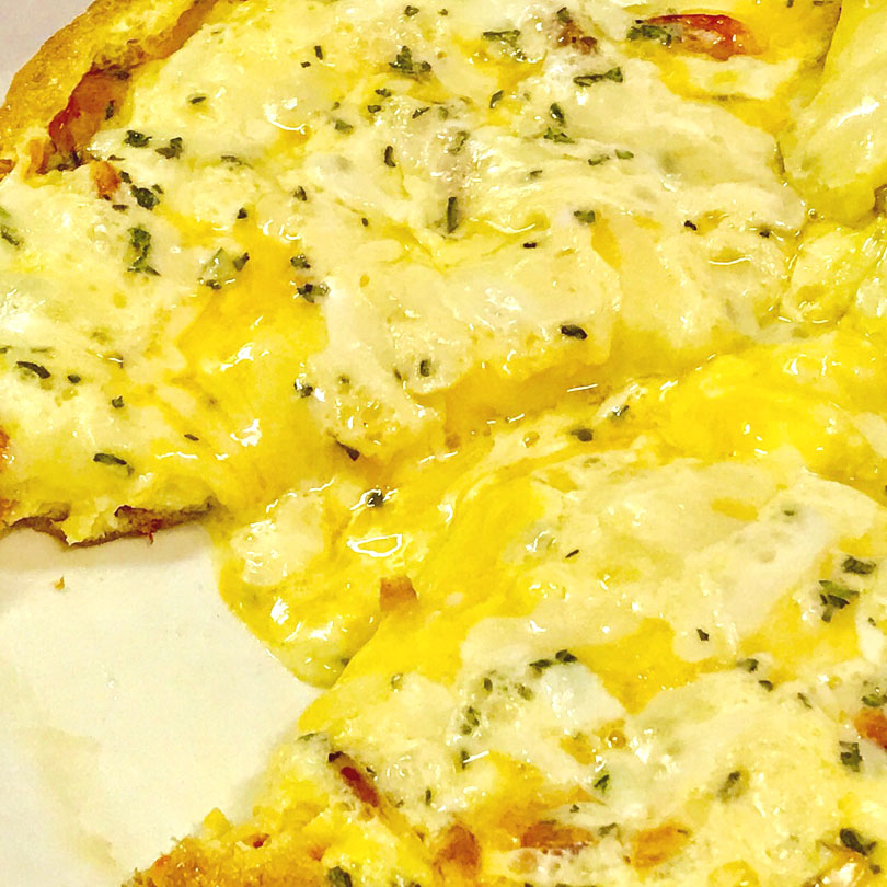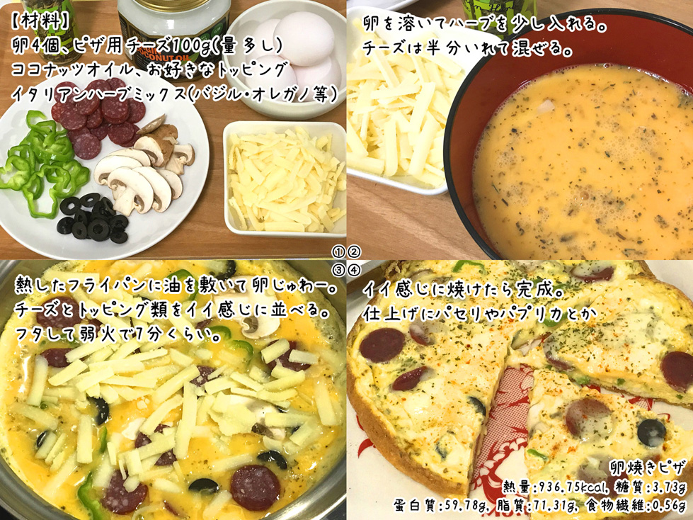 卵とチーズ、そしてお好きな具材で作るピザ風の卵焼き料理です。