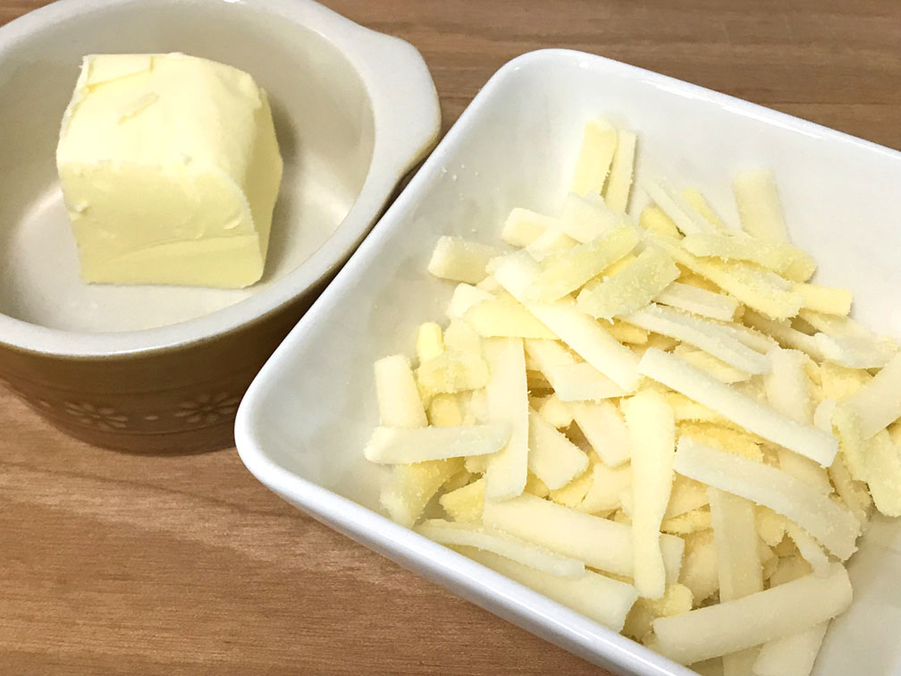 1、チーズとバターを準備する。