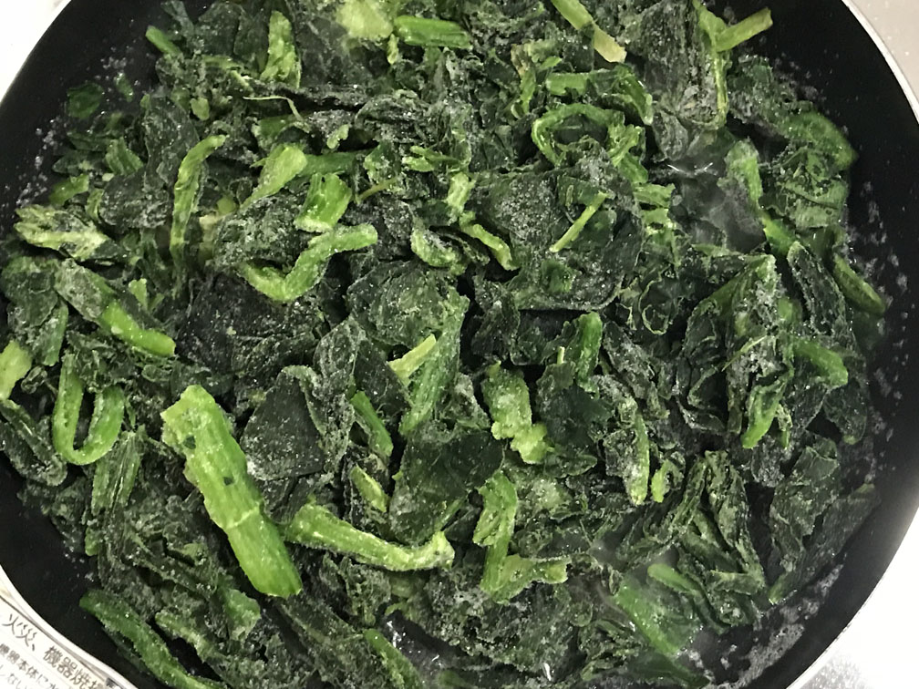 冷凍ほうれん草はコスパがとても良いので、冷凍庫に常時ストックしておくと良いです。
