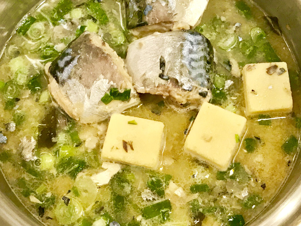 鯖缶 in 味噌汁