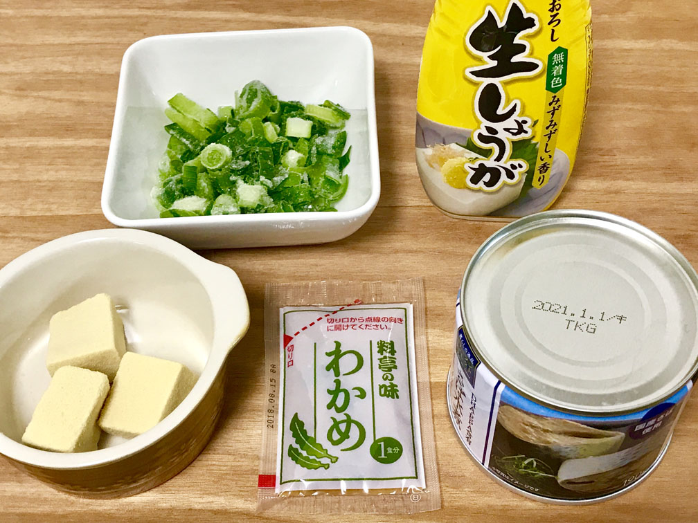 わかめ、豆腐、油揚げ、ほうれん草、小松菜……