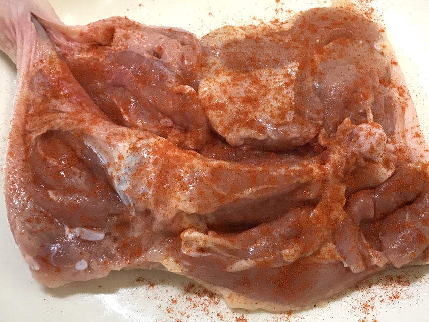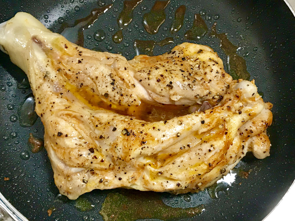 面倒なレシピに見えるかも知れませんが、実際には「塩コショウ&唐辛子を振って焼く」だけの鶏肉料理です(*´ω`*)