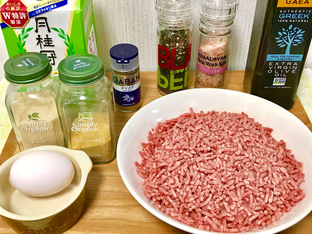 ・スパイス各種:適量(ナツメグ・ガーリック・オニオン・胡椒)