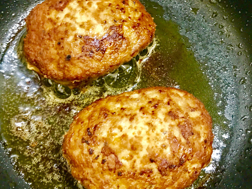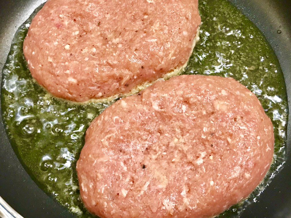 フライパンにオリーブオイルを入れて、強火~強めの中火で両面1分半ずつ焼きます。