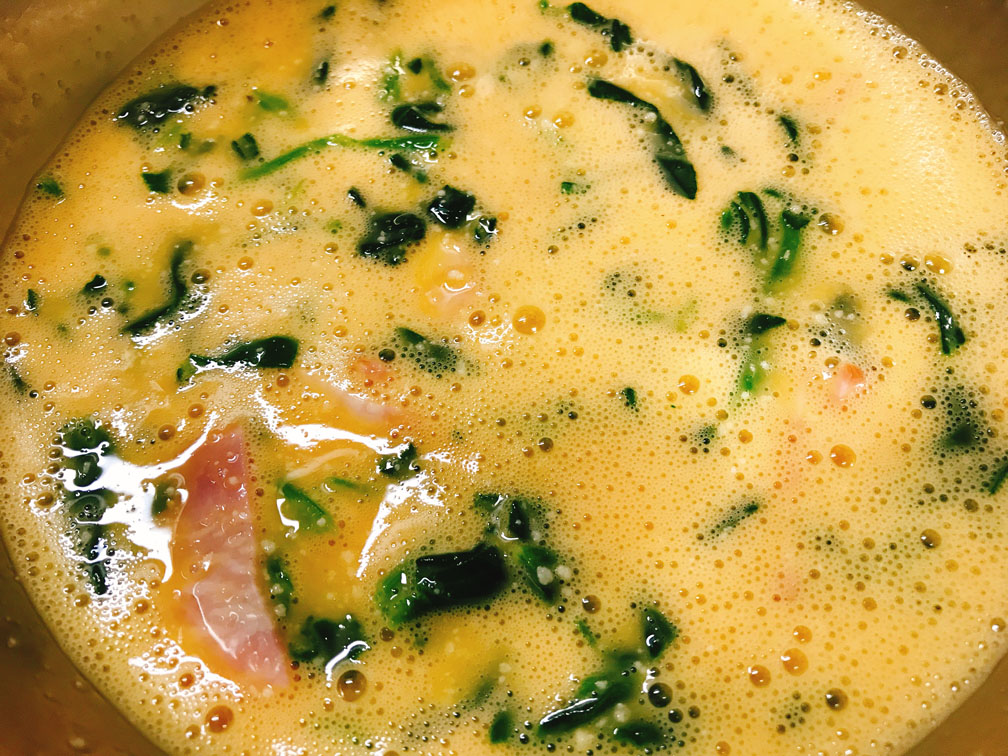 色々な野菜やチーズ、あるいはひき肉等を入れても美味しいです。