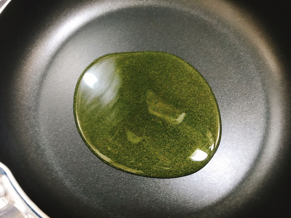 オリーブオイルを敷いて身を下にして焼きます。