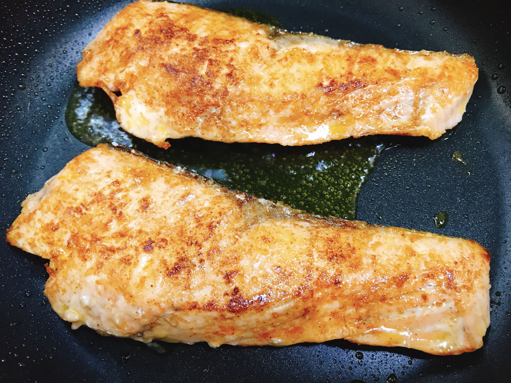 ぱっと見難しそうですが、鮭を焼いてソースを絡めるだけなので、とても単純です。