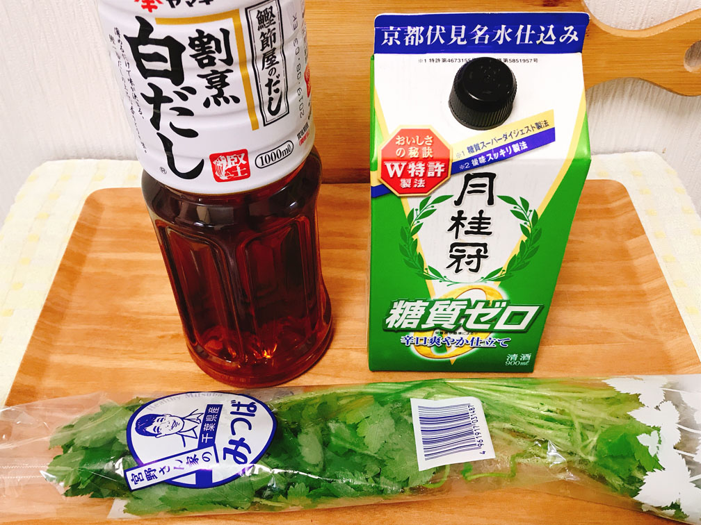 三つ葉を入れてさっと火を通して、しんなりさせれば完成です。