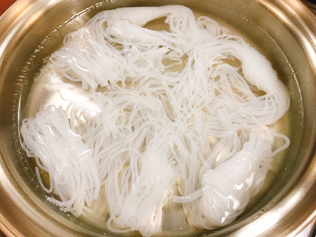 沸騰したお湯で3分くらい茹でて、臭みを取ります。