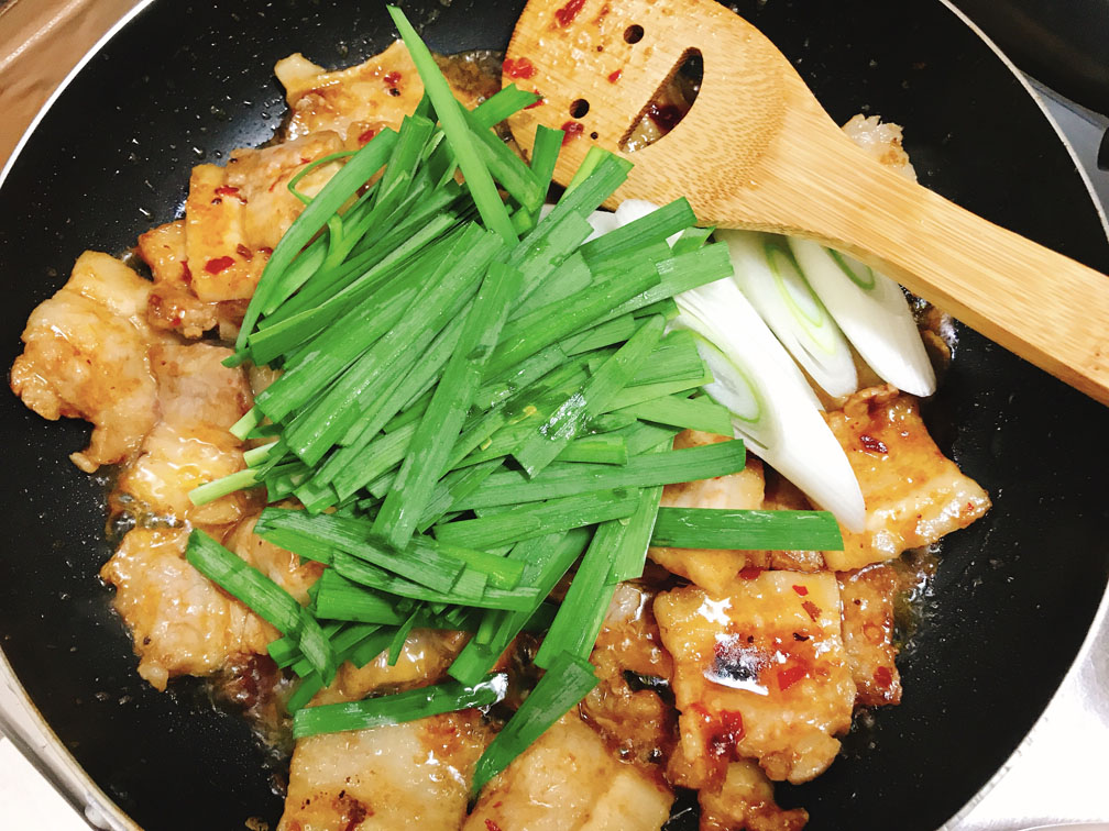 仕上げにニラ・長ネギを入れます。