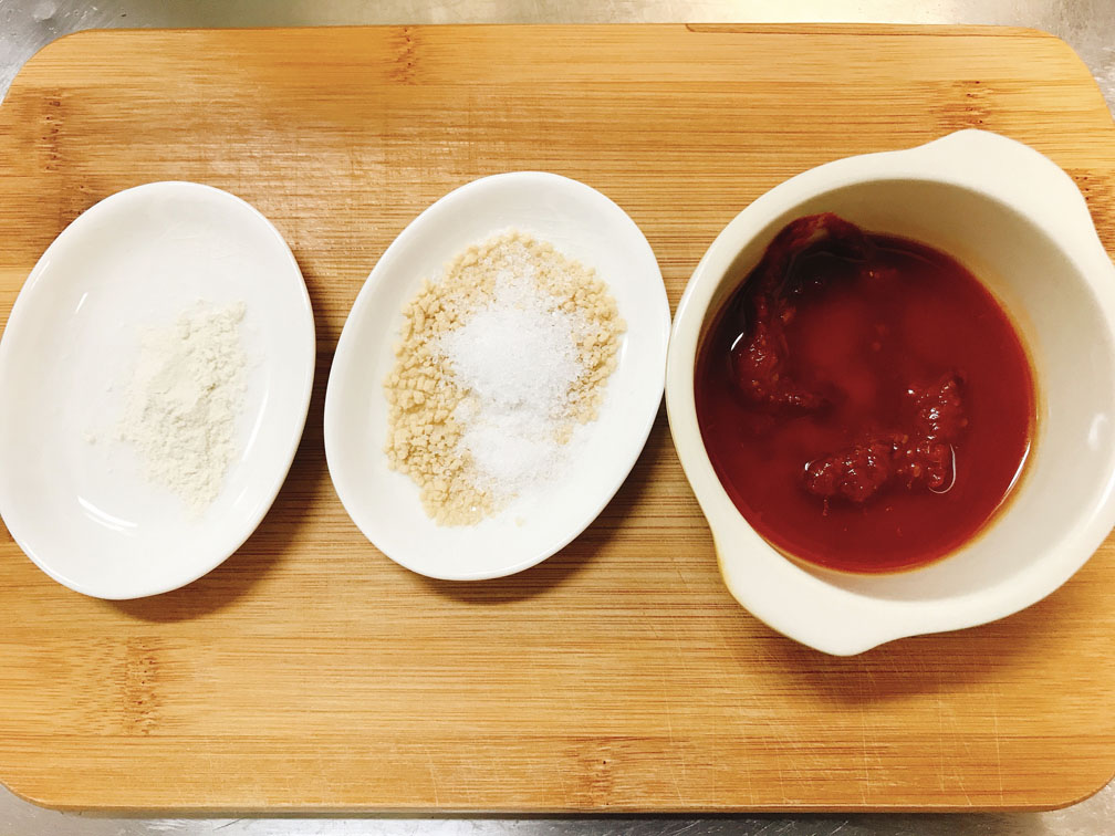 ※生姜は写真の量だと少し多いので、10gだけ使用し、残りはラップして冷蔵庫に入れます。
