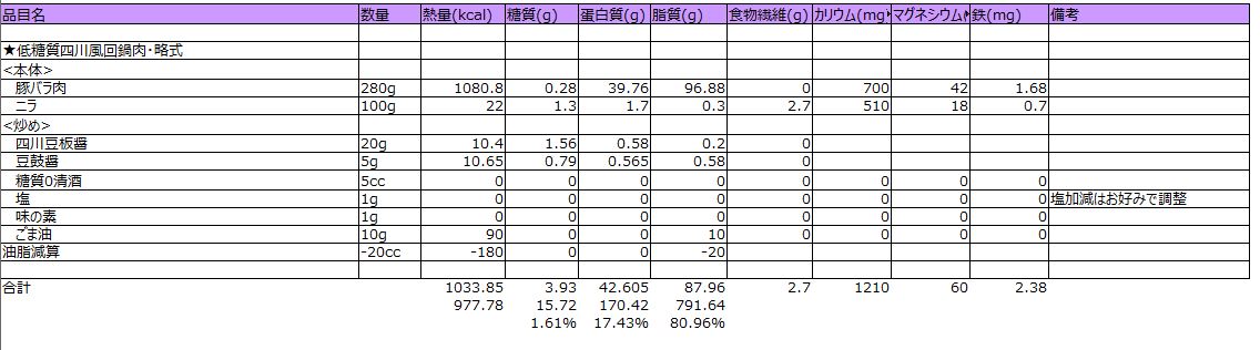 低糖質四川風回鍋肉・略式