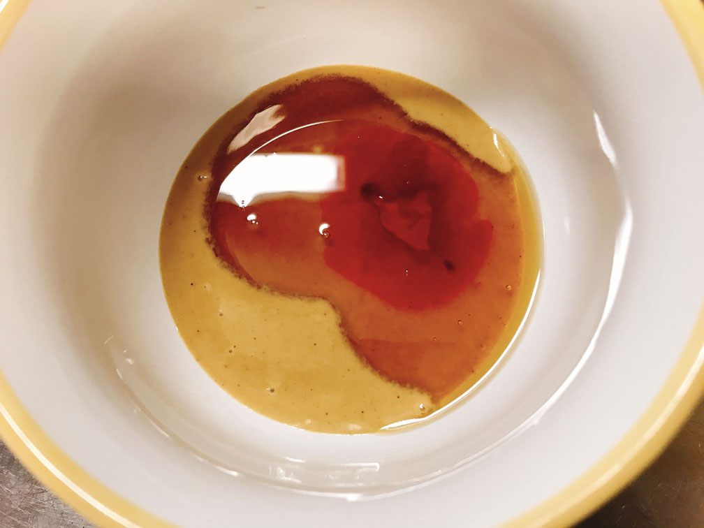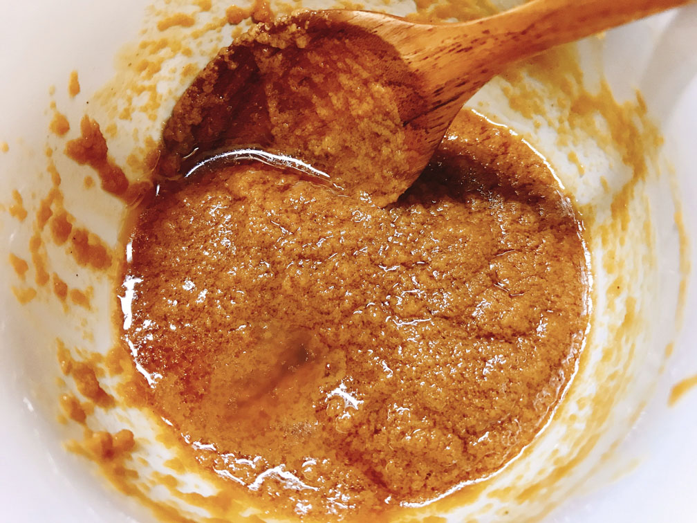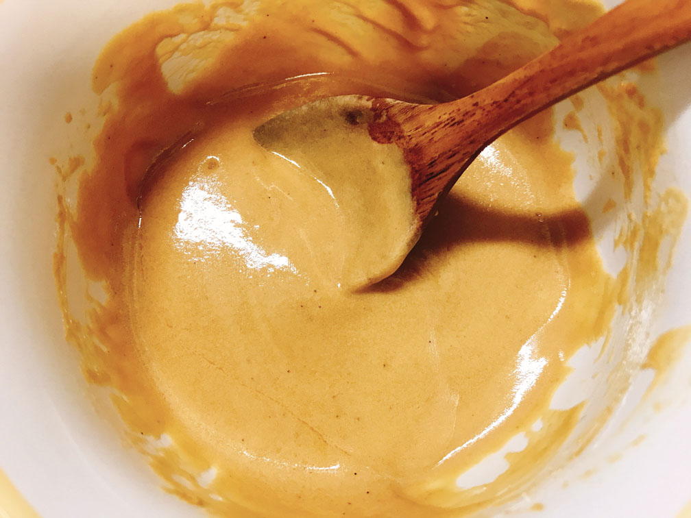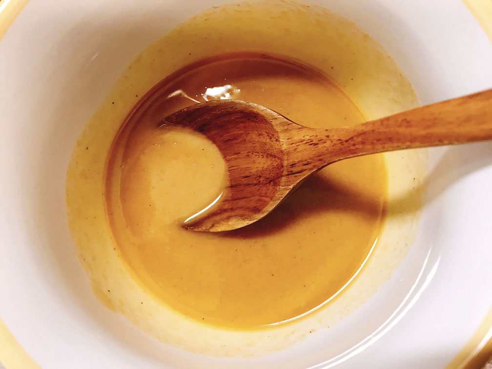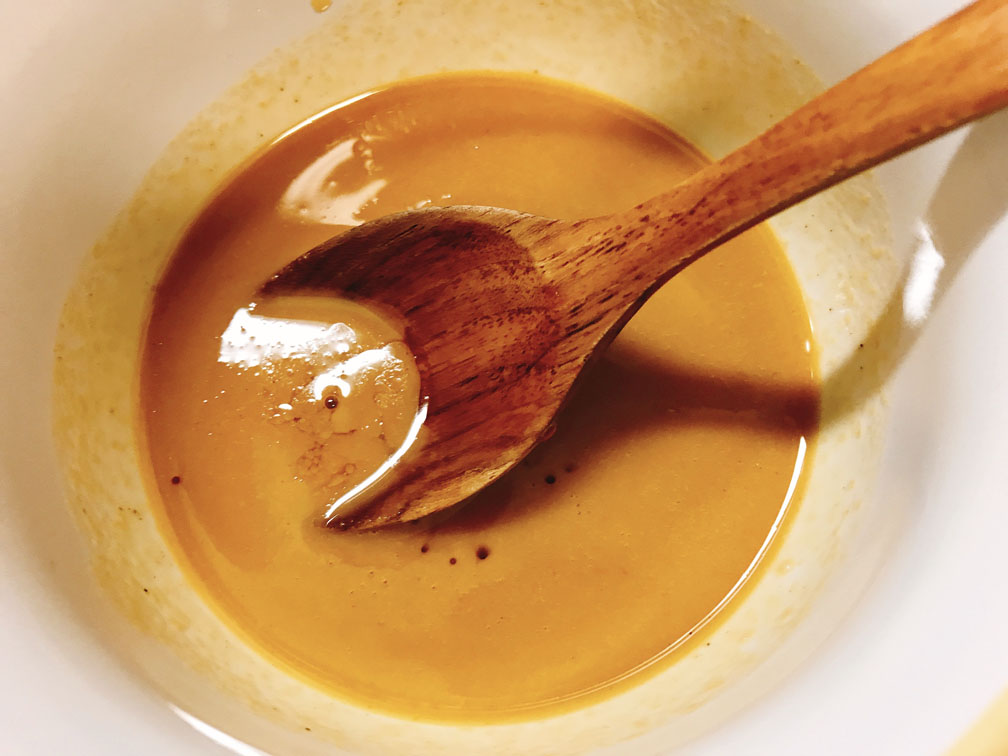 これにより、水分と油分が混ざり合い、滑らかなタレを作る事ができます。