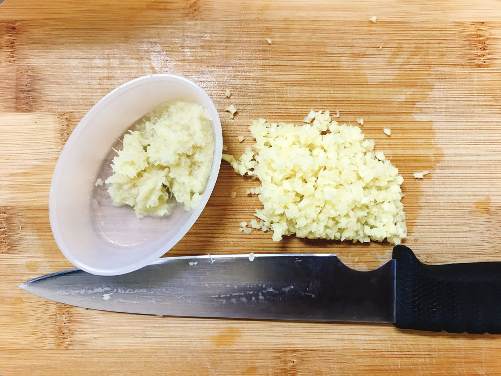 皮を剥き、擦り下ろすか、みじん切りにします。