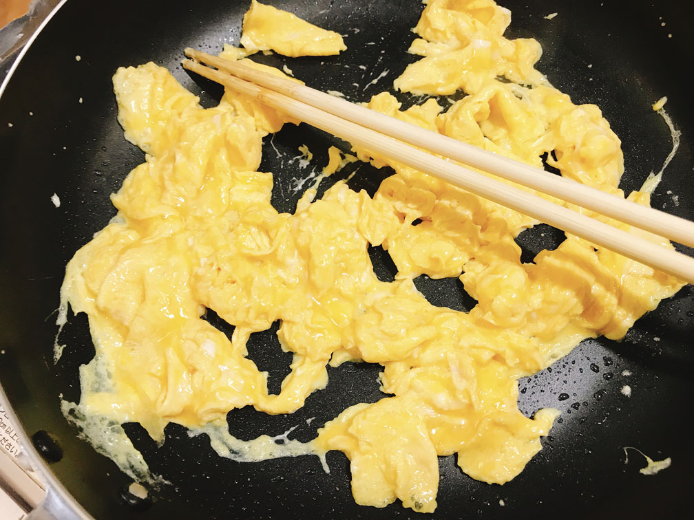 4、卵を炒めます