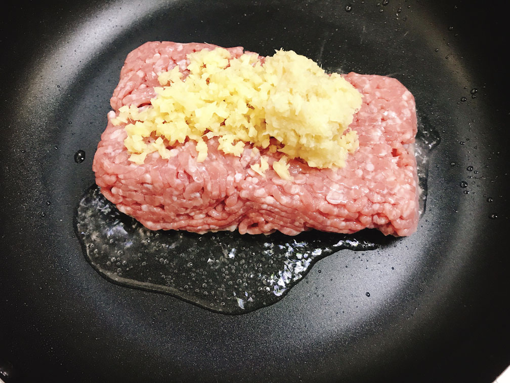 ひき肉と生姜をある程度炒めてからお酒を入れてね。
