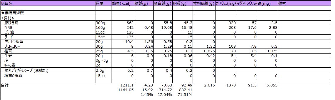 ※炒飯に良く使われる材料として長ネギがありますが、長ネギはそこそこ糖質がありますので、気にする人はネギ無しのほうが良いでしょう。