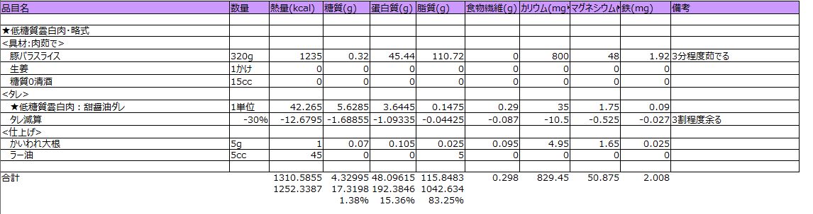 ・低糖質雲白肉:甜醤油ダレ:1単位