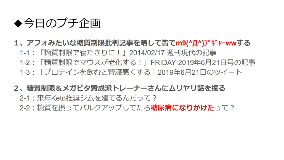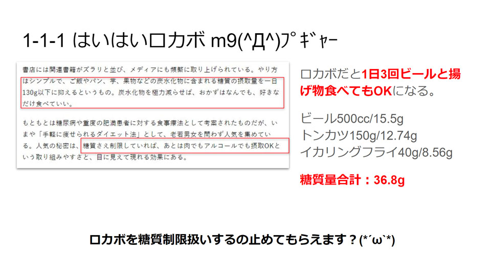 「アフォみたいな糖質制限批判記事をプロジェクターで晒してみんなでm9(^Д^)プギャーwwする」