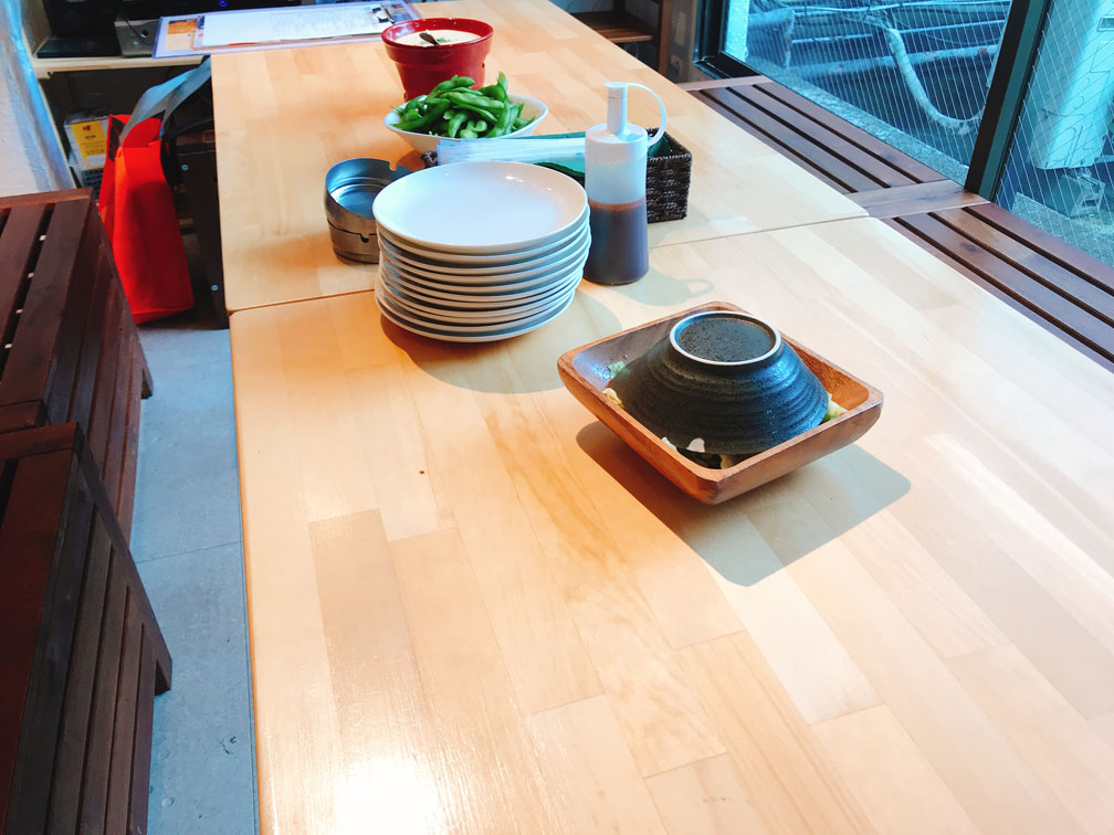 室内でエアコンが効いてるのは良かったのですが、焼き場が1ヵ所のため、限られたスペースの室内で人が行き交うため、やや手狭な印象になりました。