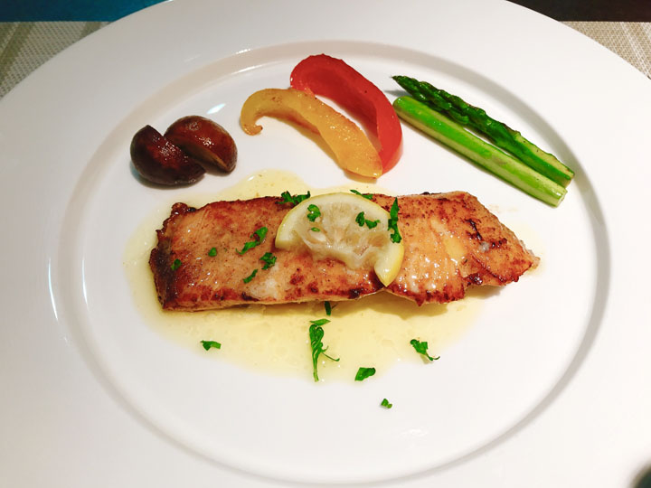もし鮭が無ければ、タラを使った「白身魚のポワレ 粒マスタードソース」に変更する予定でした。