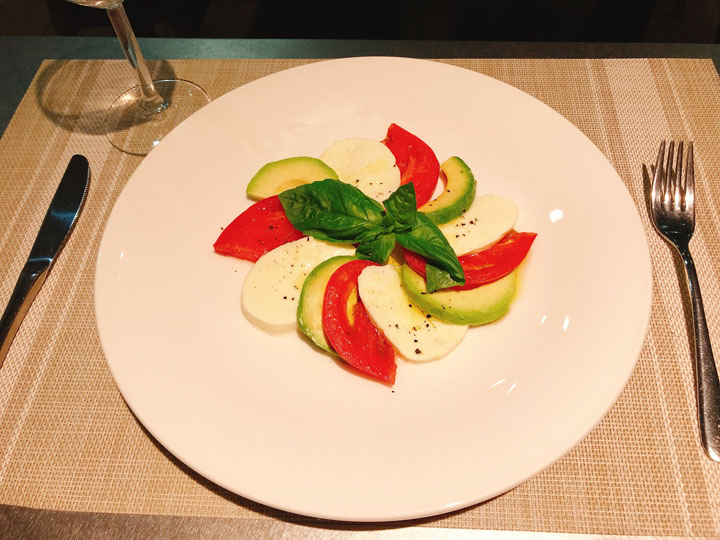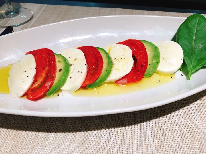 トマトとモッツァレラチーズの定番料理。南イタリア産のライトボディEXVオリーブオイル使用。