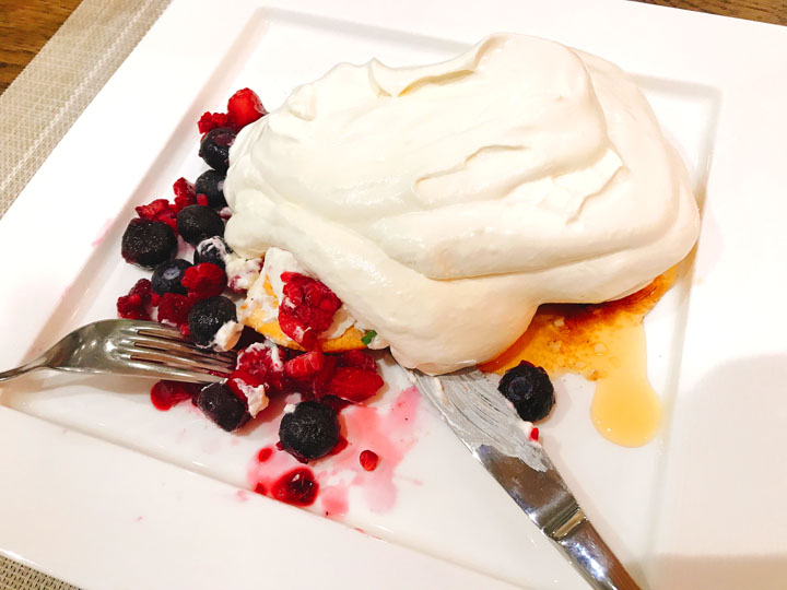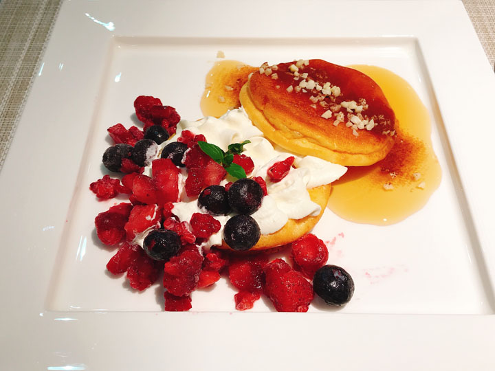 ◆デザート:低糖質クラウドブレッドパンケーキ ~ナッツとベリーのミルキーウェイ~