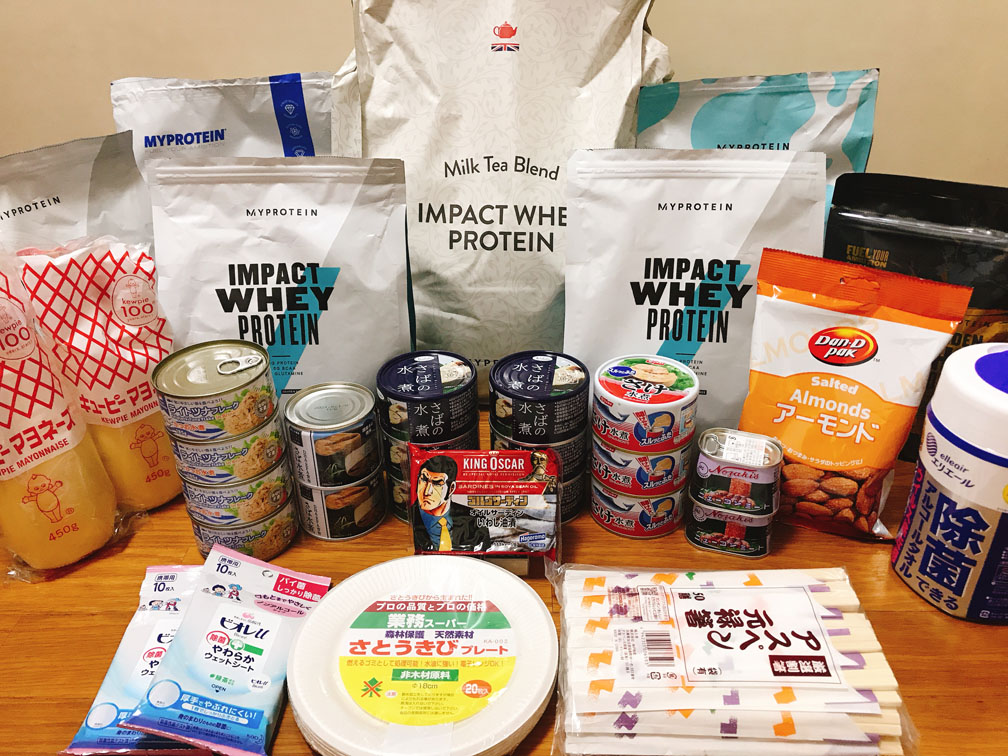 プロテインとサプリメント、塩の在庫は大量にあるので、水さえあればあと2週間は持つ。
