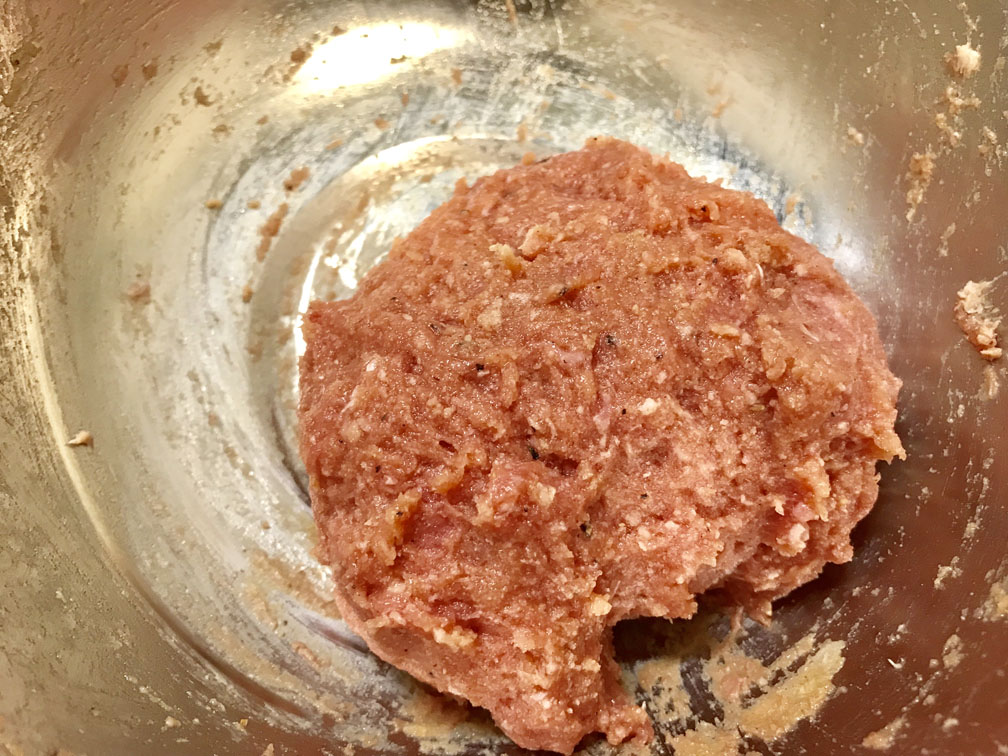 卵・スパイス各種を入れてこねて、最後におからパウダーを入れてつなぎ替わりにします。